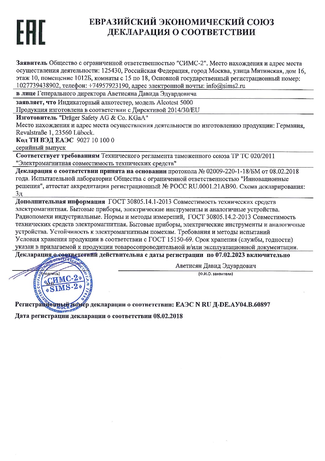 | Диапазон показаний, промилле | 0,00-2,50 |